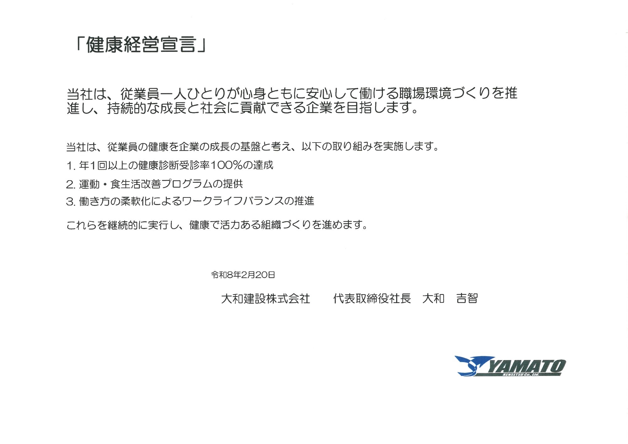 全従業員の心と体の健康を保持・増進するため、健康経営を実現していくことをここに宣言いたします。