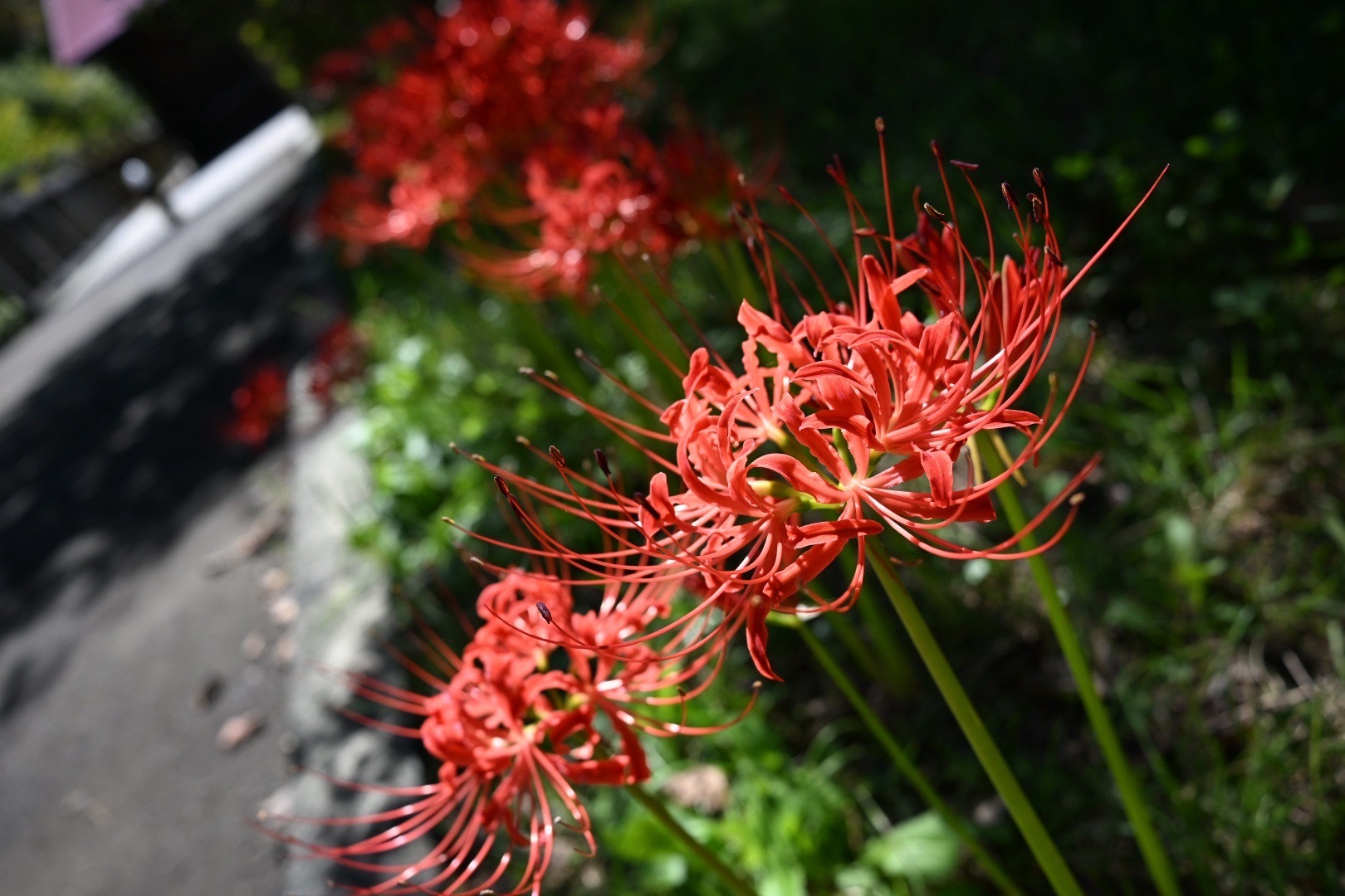 まるで童話の世界に入り込んだようでした。園内にはヒガンバナが咲いていて、赤い花が秋の景色を一層鮮やかにしてくれます。
