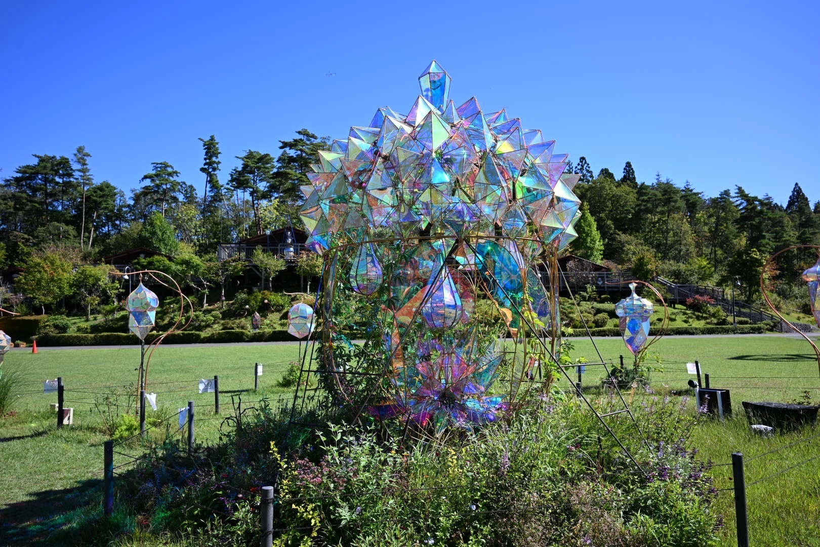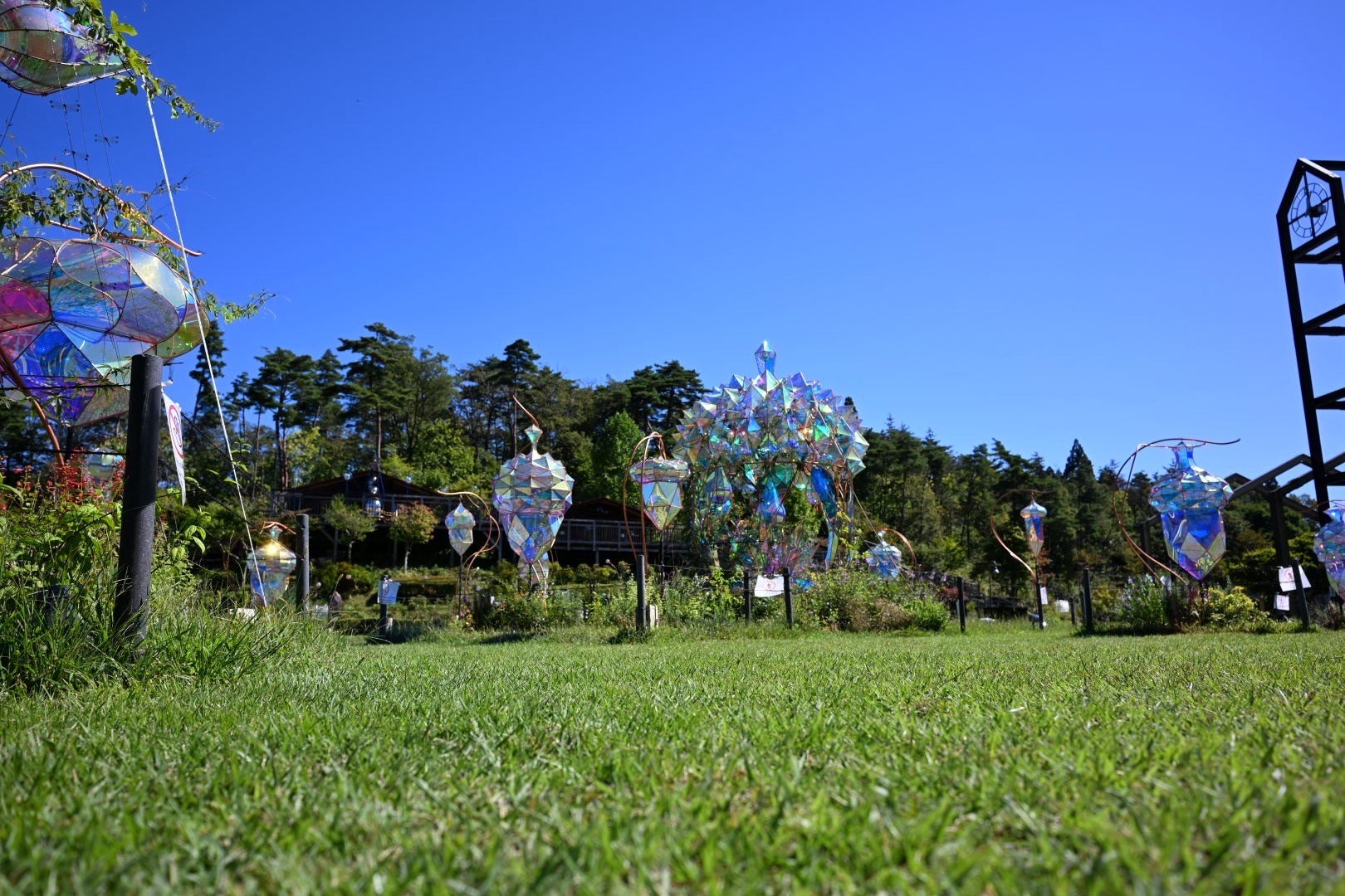 木々の間から差し込む光がきらきらと揺れて、園内はとても穏やかな雰囲気。カラフルなオブジェが太陽の光を受けて輝き、