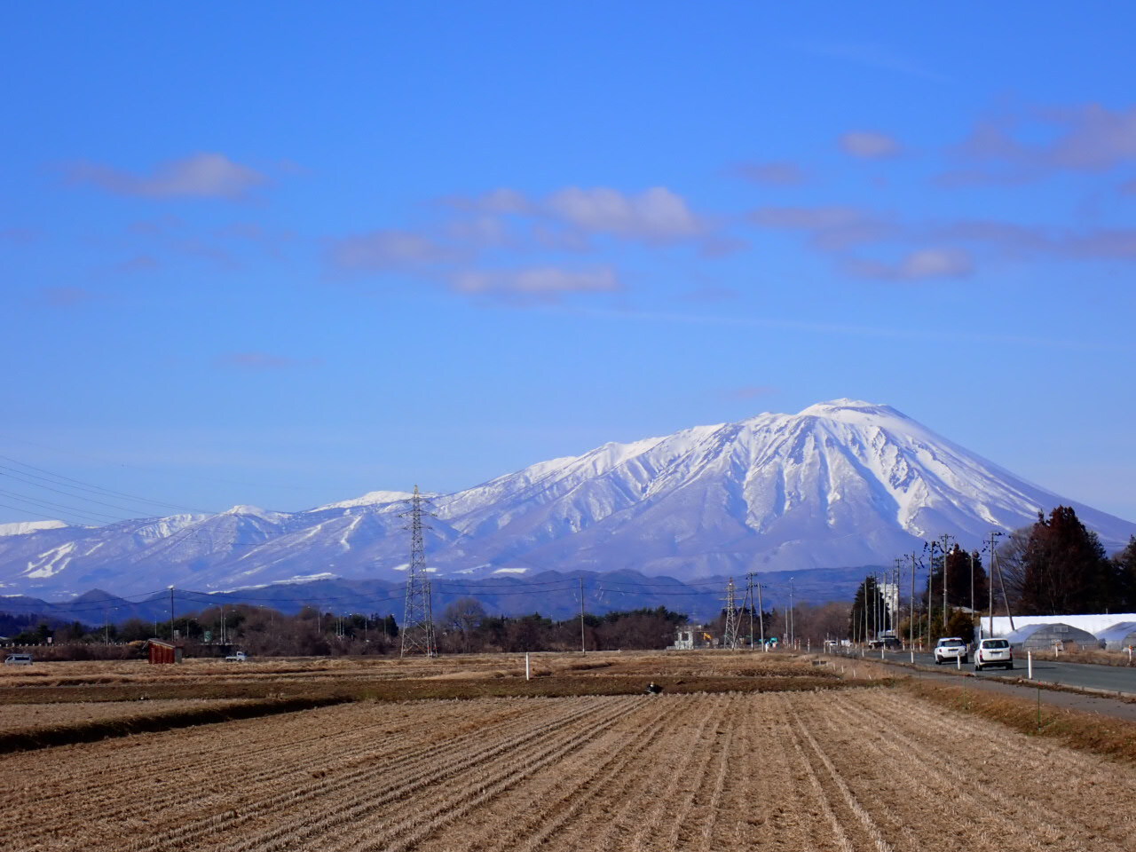 雪が残る雄大な岩手山は、澄んだ青空に映え、季節の移ろいを静かに語りかけてくれます。