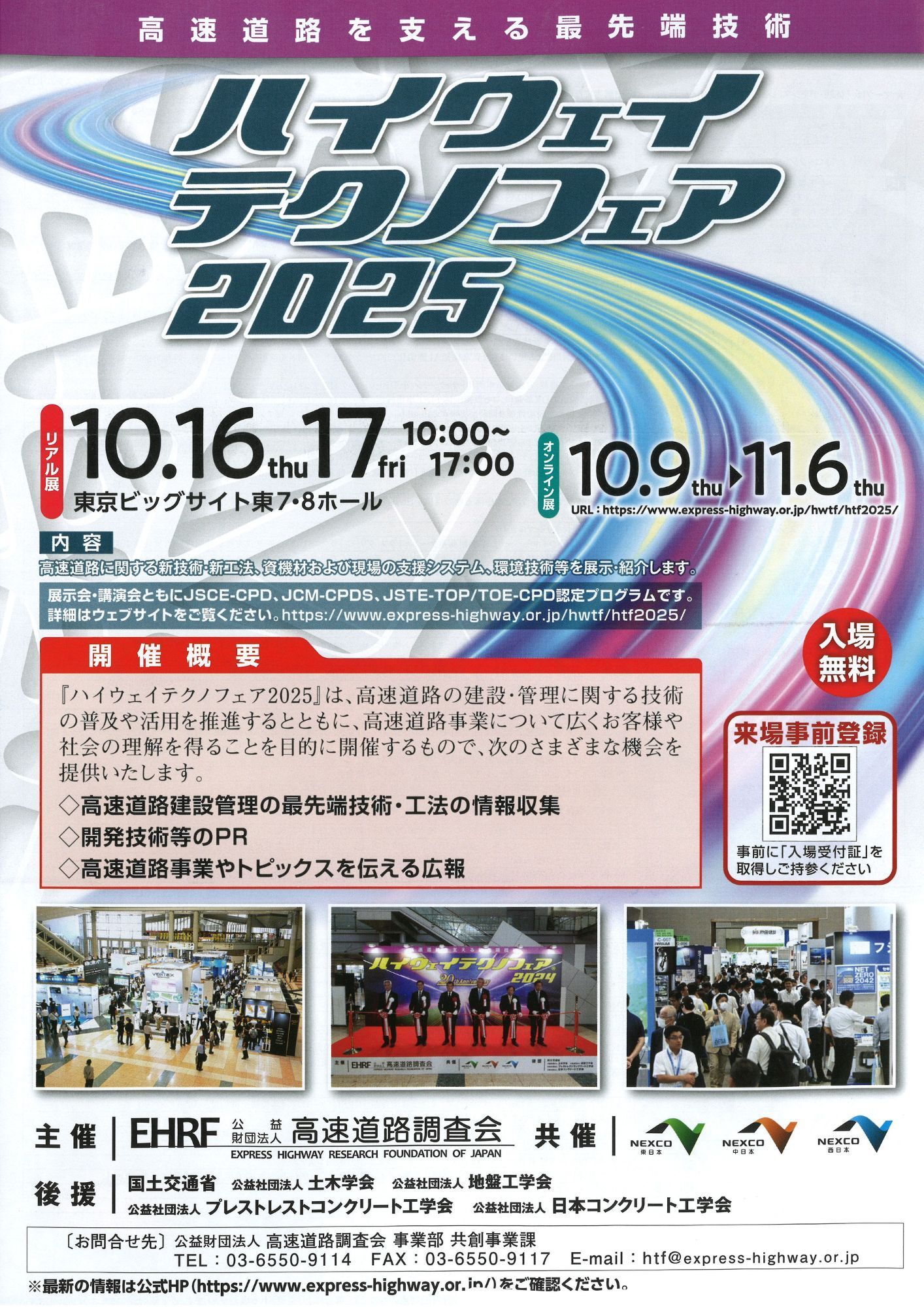 『ハイウェイテクノフェア2025』が、10/16日(木)・17日(金)に東京の有明にある東京ビッグサイト東7・8ホールで開催されます。