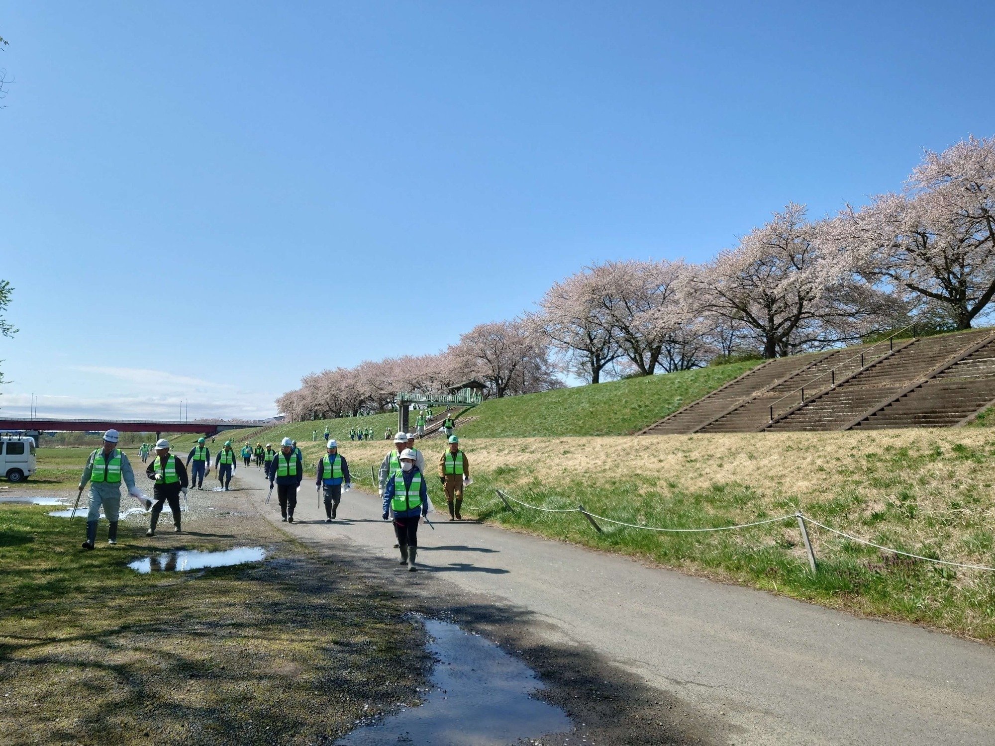4月16日に行われた岩手県建設業協会花巻支部主催の「北上川流域清掃活動」に参加いたしました。