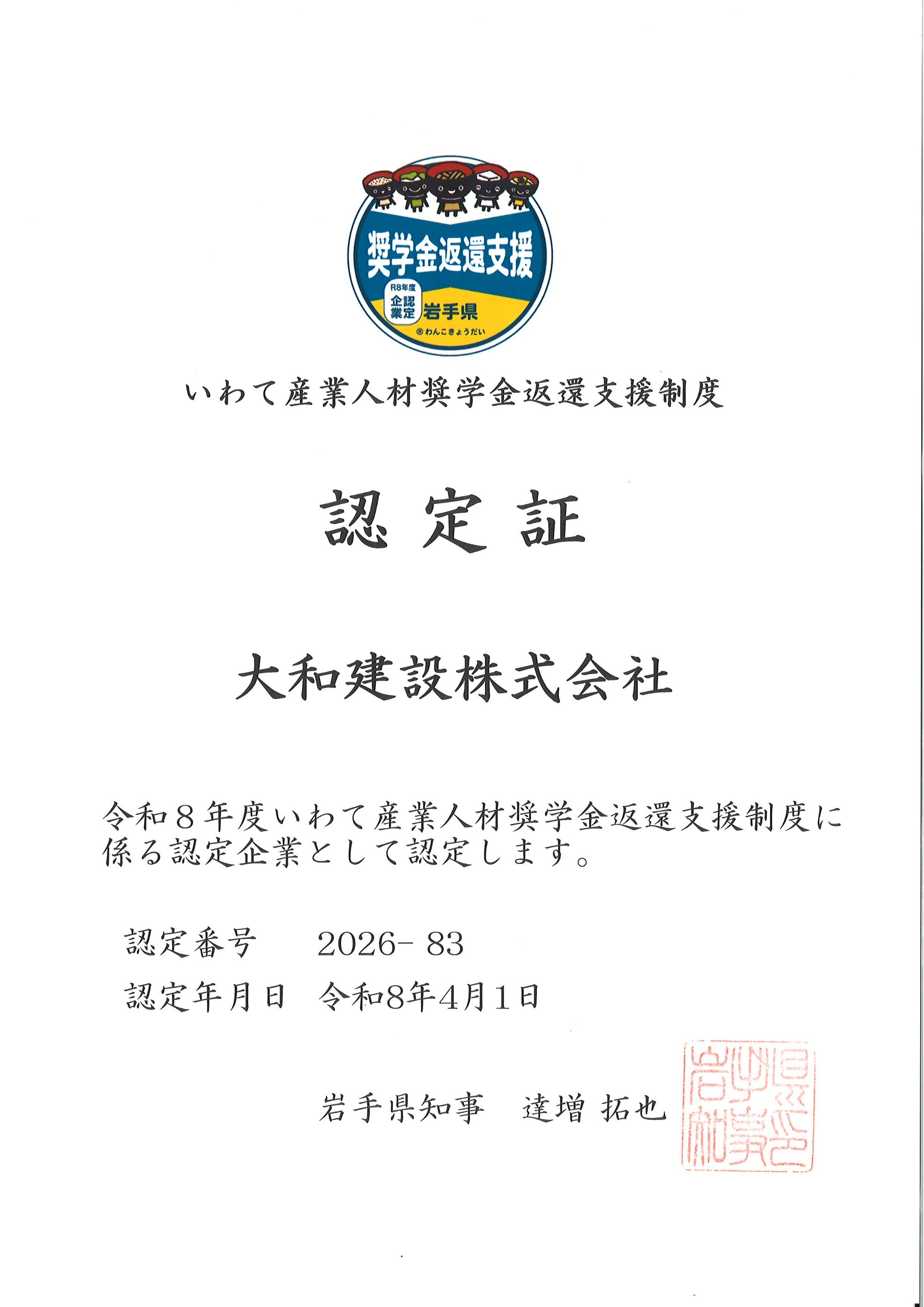 当社は岩手県が実施する「いわて産業人材奨学金返還支援制度」の認定企業となりました。